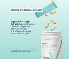 Our Happy V® Debloat + Digest was created for anyone who experiences uncomfortable symptoms associated with food intolerances including bloating, gas, indigestion and irregular bowel movements.