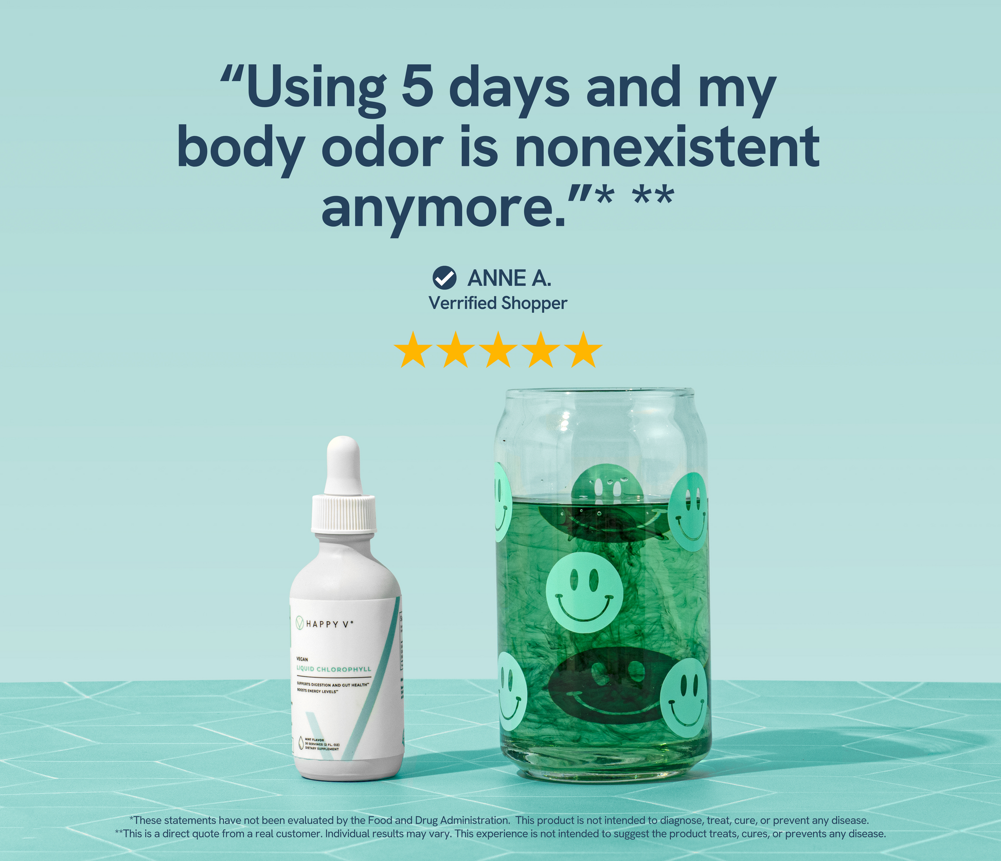 Our Happy V® Liquid Chlorophyll was formulated with a water-soluble Chlorophyllin that is better absorbed by the body. It works to reduce unwanted body odors, improve digestion and support gut health.